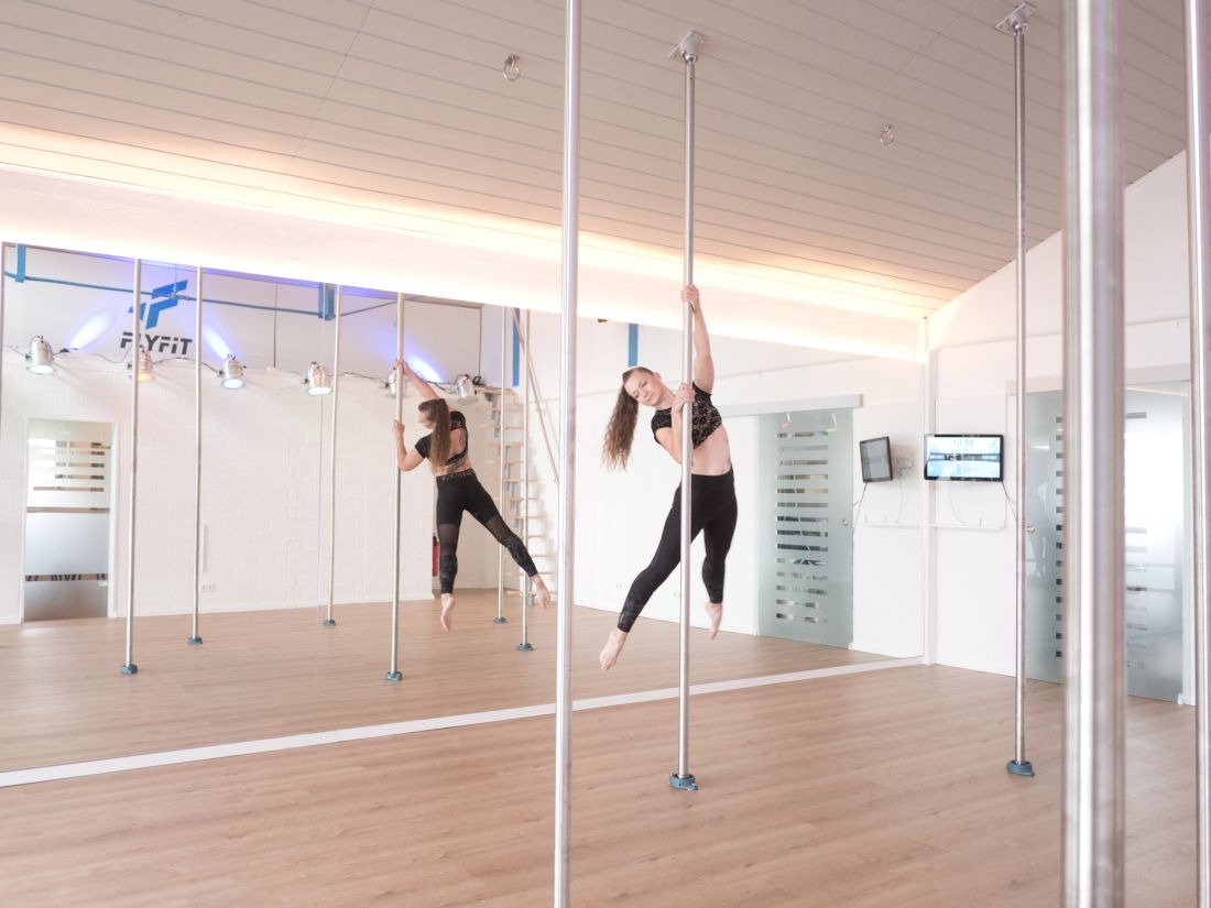 Poledance ist eine Mischung aus Akrobatik, Tanz und Fitness-Workout. Das Training an der vertikalen Edelstahlstange ist ein umfassendes Workout für alle Muskelpartien und trainiert nicht nur die Kraft, sondern steigert auch die Flexibiltät und Koordination.